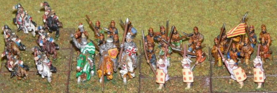 ![]() SoA-Basierung: 1x4Kl(Gen), 2x4Kl,7x3Hi,2xPl III/23: Khmer 605 bis 1400 ![]() 1xEl (Gen), 1xEl, 1x3Re, 4x4Hi, 2x4Bo, 2x2Pl, 1xArt oder 3Kl oder 3Hi III/24 Angelsachsen 617 bis 1014 ![]() (a) 617-700: 1x4St (Gen), 1x4St, 6x4Sp, 2x4Sp oder 7Hd, 1x2Pl, 1x3Re oder 4St ![]() III/26: Frühe Serben oder Kroaten (a) Serben 627-1089: 1x3Ri (Gen), 2x3Ri, 7x3Hi, 1x3Bo, 1x2Pl ![]() (b) Kroaten 627-1180: 1x3Re (Gen), 2x3Re, 8x3Hi, 1x2Pl ![]() III/28 Karolinger 639 bis 888 ![]() 1x3Ri (Gen), 5x3Ri, 4x4Sp, 1x2Pl, 1x2Pl oder 2LR oder 7Hd III/30 Magyaren 650 bis 997 ![]() (b) 896-997: 1x3Re (Gen) 1x3Re, 5x2LR, 3x4Sp, 1x3Hi, 1x2Pl III/34 Andalusier 710 bis 1172 (a) 711-765: 1x3Re (Gen), 2x3Re, 1x2LR, 8x2Pl (b) 766-1172: 1x3Re (Gen), 1x3Re, 2x2LR, 6x2Pl, 2x4Sp ![]() III/40 Vikinger und Leidang 790 bis 1280 ![]() (b) Vikinger 850-1280; 1x4Kl (Gen), 10x4Kl, 1x3Kl oder 3St oder 2Pl oder 3Bo ![]() (d) Leidang 1070-1280: 1x3Ri (Gen), 8x4Kl oder 3Hi, 2x2Pl oder 3Bo, 1x4Sp oder 7H III/41 Dogpeople & Pueblokulturen 500 bis 1500: ![]() 1x2Pl oder 3Bo oder 3St (Gen), 1x3St, 8x2Pl oder 3Bo, 2x2Pl III/46 Iren 846 bis 1300 ![]() 1x3Hi (Gen), 5x3Hi, 4x2Pl, 2x3Hi o 4Kl III/47 Petschenegen 850 bis ll22 ![]() III/48 Russen 860 bis 1054 ![]() 1x4Kl oder 3Re(Gen), 7x4Sp, 2x2Pl oder 4Sp, 2x4Sp oder 3/4Kl oder 2LR III/52 Ostfranken 888-1006 ![]() die Ottonischen Panzerreiter III/56 Koryo Koreaner 918 bis 1392 ![]() 1x3Re (Gen), 1x3Re, 1x2LR, 4x4Sp, 4x3/4Bo, 1x3Re oder 3Sp oder Art oder 2Pl III/62 Frühe Polen 960 bis 1335 ![]() 1x3Ri o 3Kl(Gen), 2x3Re o 2LR, 2x3Bo, 5x3Bo o 5x3Hi, 1x3Hi o 4Sp o 3Kl o 2Pl, 1x2Pl III/68 West Sudanesen 1000 bis 1591 ![]() 1x3Ri o 3Kl(Gen),2x3Re o 2LR, 2x3Bo, 5x3Bo o 3Hi, 1x3Hi o 4Sp o 3Kl o 2Pl, 1x 2Pl III/69 Tuareg 1000 bis 1880 ![]() 1x3Km (Gen), 8x3Km, 1x2/3Km, 2x3St oder 3Km oder 2Pl oder 3Hi III/73 Seldschuken 1037 bis 1276 (a) Rum 1200-1243: 1xRe (Gen), 1xRe, 1x3Ri, 6xLR, 1x4Sp, 1x3Bo o Pl, 1xPl o 3Bo o 3Hi (b) andere: 1xRe (Gen), 1xRe o LR, 8xLR, 1xPl o 3Bo o 3Hi o LR, 1xPl o 3Bo o 3Hi o LR III/78 Russen 1054 bis 1246 1x3Re (Gen), 4x3Re, 2x2LR, 2x4Sp, 2x2Pl, 1x7Hd o 3Hi o 3/6Ri III/79 Kumanen 1054 bis 1394 ![]() 1x3Re (Gen), 9x2LR, 1x2LR o 3Re, 1 x2LR o 7Hd o 2Pl IV Hochmittelalter 1071 bis 1500hier wird in allen 4 Epochen noch einiges nachzutragen sein...IV/4 Franzosen 1072 bis 1330 (a) 1072 bis 1150: 1x3Ri (Gen), 4x3Ri, 4x4Sp, 2x2Pl, 1x7Hd (b) 1151 bis 1330: 1x3Ri (Gen), 3x3Ri, 1x3Ri o 3Re, 1x4Ab, 3x3/4Sp, 2x2Pl, 1x7Hd IV/7 Frühe Kreuzfahrer Dänan 1096 bis 1128 ![]() IV/9 Waldlandindianer 1100 bis 1620 ![]() ![]() 1x3St(Gen), 8x3St, 3x2Pl IV/11 Indianer der Pazifikküste 1100 bis 1770 ![]() nach DBA3: 1x3/4Bo oder 4Kl(Gen), 2x4Kl, 2x3Bo oder 4Kl, 5x3Bo, 2x2Pl IV/13 Heiliges Römisches Reich Deutscher Nationen 1106 bis 1519 ![]() (a) 1106-1235: 1x3Ri(Gen), 4x3Ri/ /4Kl, 1x4Ab, 2x4Sp, 2x3Hi o 4Sp o 4Pk, 2x2Pl (b) 1236-1450 : 1x3Ri(Gen), 1x3Ri, 2x6Ri, 1x4Ab, 1x4Kl, 2x4Sp, 2x3Hi o 4Sp o 4Pk, 2x2Pl (c) 1450-1478: 1x6Ri(Gen), 2x6Ri, 1x3Re, 2x4Pk, 2x3/4Sp, 1x4Ab o 2Pl, 2xKw o 4Ab, 1xArt ![]() (d) 1479-1519: 1x4Pk o 3Ri(Gen), 1x3Ri, 2x6Ri, 1x3Re, 3x4Pk, 1x2Pl, 2xKw, 1xArt ![]() IV/16 Schotten 1124 bis 1512 ![]() 1x3Ri(Gen), 6x4Pk, 2x4Pk oder (1x3Bo + 1x5St), 2x4Pk oder 3St, 1x2Pl IV/18 Litauer oder Samogiten 1132 bis 1435 ![]() 1x3Re oder 2LR(Gen), 1x3Re oder 2LR, 6x2LR, 2x3Hi, 2x2Pl IV/19 Purempecha (Tarasken) 1168 bis 1521 ![]() SoA-Basierung: 1x4Kl (Gen), 2x4Kl, 6x3Bo, 3x2Pl IV/25 Späte Bulgaren 1186 bis 1395 ![]() 1x3Ri (Gen), 3x3Ri, 6x2LR, 1x4Sp oder 2LR, 1x2Pl oder 2LR IV/27 Esten 1200 bis 1227 ![]() 1x4Wb(Gen), 9x3St, 2x/a>2Pl IV/28 Pruzzen 1200 bis 1283 ![]() 1x3Re(Gen), 1x3Re, 4x3St, 4x3St oder 3Hi, 2x2Pl IV/29 Tupi 1200 bis 1601 ![]() 1x3St(Gen), 6x3Bo, 5x3St IV/30 Deutscher Orden 1201 bis 1522 ![]() 1x3Ri(Gen), 3x3Ri, 1x3Re, 2x2LR, 2x4Ab, 1x4Sp, (1x3Hi + 1x2Pl) oder 2x7Hd IV/35 Mongolisches Reich 1206 bis 1266 ![]() IV/37a Malayen 1222 bis 1511: 1xEl (Gen), 1xEl, 6x4Wb, 2x3Bo, 1x2Pl, 1x2LR ![]() IV/40 Siamesen 1238 bis 1518: 1xEl(Gen), 1xEl, 1x3Re, 1x4Hi, 6x3Hi, 2x3Bo ![]() mit Stammeskriegern: 1xEl(Gen), 1xEl, 1x3Re, 1x4Hi, 6x4St, 2xPl ![]() IV/42 Perser 1245 - 1393 & 1499 - 1520 ![]() 1x3Re(Gen), 7x3Re, 1x2LR, 2x3Bo, 1x7Hd ![]() IV/43 Späte Ungarn 1245 bis 1526 (a) 1245-1395: 1x3Ri(Gen), 1x3Ri, 7x2LR, 1x4Sp, 2x2Pl oder 3Bo (b) 1396: 1x3Ri (Gen), 2x3Ri, 1x6Ri, 4x2LR, 1x4Ab, 1x4Sp, 2x2Pl oder 3Bo (c) 1397-1526: 1x3Ri(Gen), 2x6Ri, 3x2LR, 1x4Ab, 1x4Sp o 4Kl o 5St, 2x2Pl o 3Bo, 2x2Pl o Kw ![]() IV/44 Russen nach dem Mongolensturm 1246 bis 1533 (a) 1246-1380: 1x3Re(Gen), 8x3Re, 1x4Sp, 1x3Bo, 1x3Re oder Kw ![]() (b) 1381-1533: 1x3Re(Gen), 5x3Re, 2x2LR, 1x4Sp, 1x3Bo, 1x2Pl, 1x3Re oder Kw IV/45 Mamaluken 1250 bis 1517 1x3Re(Gen). 6x2Re, 2x2LR, 1x2Pl, 1x2Pl oder 3St oder 3Hi, 1x7Hd oder 2LR IV/47 Goldene Horde & Nachfolger 1251 bis 1556 ![]() 1x3Re(Gen), 3x3Re, 6x2LR, 1x3Bo, 1x4Bo oder 4Ab oder 3St oder 2LR IV/49 Turkmenen in Anatolien 1260 bis 1515: 1x3Re(Gen), 6xLR, 2x3Hi, 2xPl o 3Bo, 1x7Hd IV/52 Mongolische Nomaden 1266 bis 1508 ![]() 1x3Re(Gen), 4xRe o LR, 6xLR, 1x7Hd o LR IV/53 Mixteken oder Zapoteken 1280 bis 1523 ![]() 1x3/4Hi(Gen), 2x3/4Hi, 6x3Hi, 3x2Pl ![]() IV/55 Osmanisches Reich 1281 bis 1512 (a) 1281-1361: 1x3Re(Gen), 1x3Re, 7x2LR, 1x3Hi oder 4Sp oder 7Hd oder 2LR, 2x2Pl ![]() (b) 1362-1512: 1x3Re(Gen), 3x3Re, 4x2LR, 1x4Bo, 2x2Pl, 1xArt IV/59 Samurai nach dem Mongolensturm 1300 bis 1542 (a) 1300-1464: 1x3Re oder 4Kl(Gen), 1x3Re, 6x4Kl, 3x3Hi, 1x3Bo ![]() Rennaisance Samurai 1575-1615 ![]() IV/60 Katalanische Kompanie 1302 bis 1388 ![]() 1x3Ri(Gen), 1x2LR, 6x4Hi, 2x2Pl, 2x4Hi oder 2LR IV/63 Azteken 1325 bis 1521 ![]() SoA-Basierung: 1x3Kl(Gen), 2x3Kl, 6x4Hi, 3xPl IV/64 Mittelalterliche Franzosen 1330 bis 1445 (a) 1330 bis 1345: 1x3Ri (Gen), 5x3Ri, 3x4Ab, 2x3Sp, 1x3Sp (b) 1346 bis 1418: 1x3Ri(Gen), 5x3Ri, 1x4Kl o 4Ab, 1x3Re o 4Ab, 2x4Ab, 2x3Sp o 3Bo (c) 1419 bis 1445: 1x3Ri(Gen), 4x3Ri, 1x4Kl, (4x4Pk) o (2x3Sp + 2x4Ab), 1x4Ab, 1xArt IV/66 Späte Polen 1335 bis 1510 ![]() 1x3