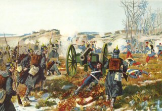 | Das 5. Jäger Batallion in der Schlacht am Mont Valerien. 19. Januar 1871 General Trochus erfolgsloser Ausbruchsversuch aus dem eingeschlossenen Paris, der die Franzosen über 4000 Mann kostete. |