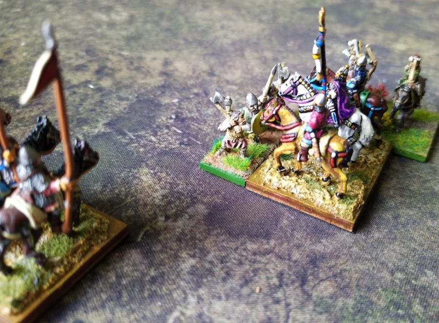..meine geschlagenen Triumphsschlachten...als Vorbereitung für Solothurn 2024 habe ich feudale Kroaten gewählt gegen Mairikianische Byzantiner. Die Kroaten jemer Zeit hatten noch sarmatische Ritter dabei; bis zu 3 Einheiten, die aber durch berittene Borenschützen ersetzt werden konten. Diese beiden Truppentypen konnten auch den Befehlshaber der Armee stellen. Mein Befehlshaber sollte beweglich bleiben, also ein berittener Borenschütze. Der Rest war Fussvolk: 6 x schweres Fussvolk, 4 x leichtes und 3 x bewaffnete Horden, 16 Einheiten also. ...das Schlachtfeld war für meine leichtere Armee, dank meinem schwachen Geländewurf, eine Katastrofe für mich; fast kein Gelände!..gegen eine Grossmacht, die meinen Kroaten fast überall überlegen war... |